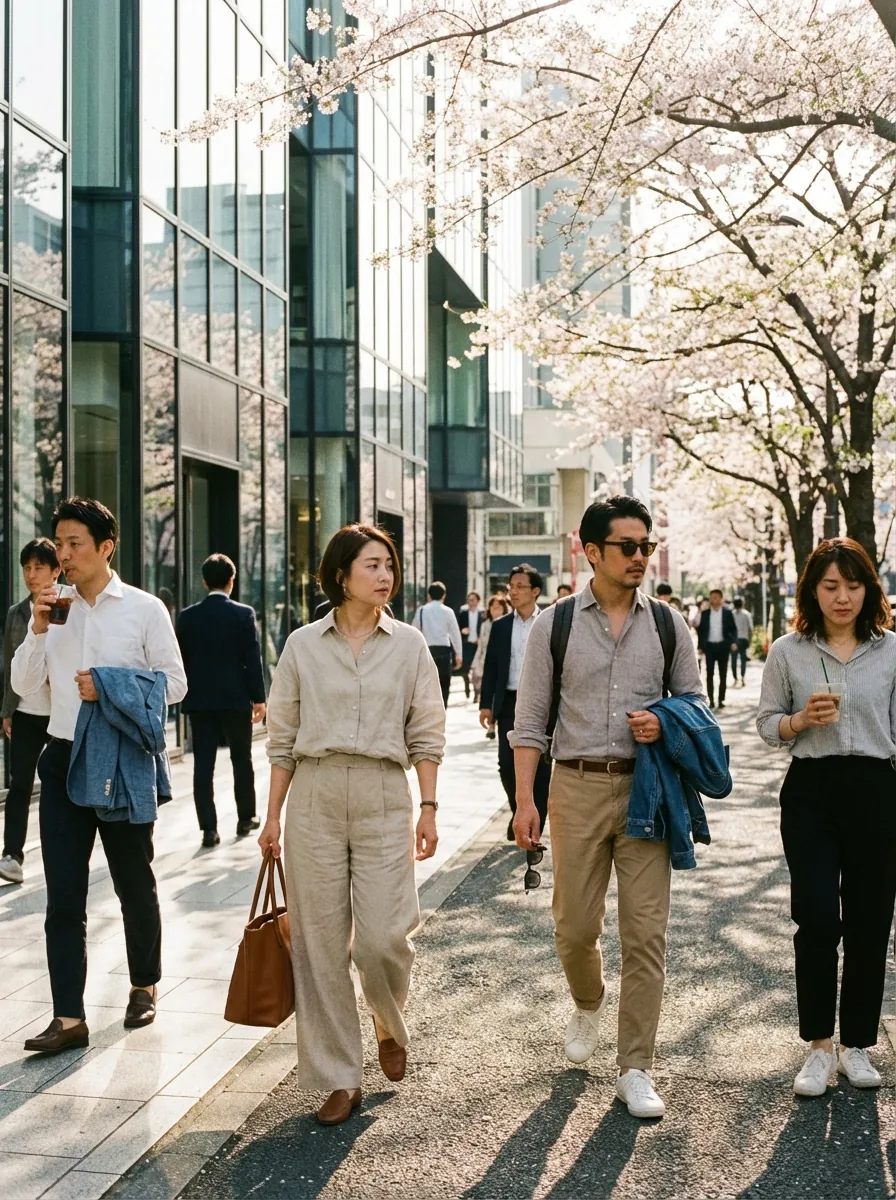 春のつもりで出かけたのに、昼は思ったより暑い。しかも通勤では汗ジミが気になるし、外を歩くなら紫外線も無視しにくい。2026年の日本気象協会の見通しでも、春から初夏を先取りした陽気の日が多く、4月中旬までに夏商材の需要が動き出す地域があるとされています。今の日本で知りたいのは、夏服へ全部切り替えることではなく、4月らしさを残しながら、暑さとUVに対応できる服の正解です。